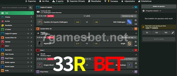 O 33R Bet oferece uma grande seleção de opções de apostas em e-sports com probabilidades competitivas